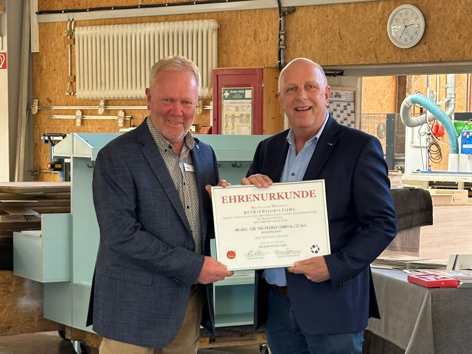 - brake – die tischlerei GmbH & Co.KG, Rhauderfehn: 25-jähriges Betriebsjubiläum (Betriebsgründung am 01.04.2000) – Bild ansehen