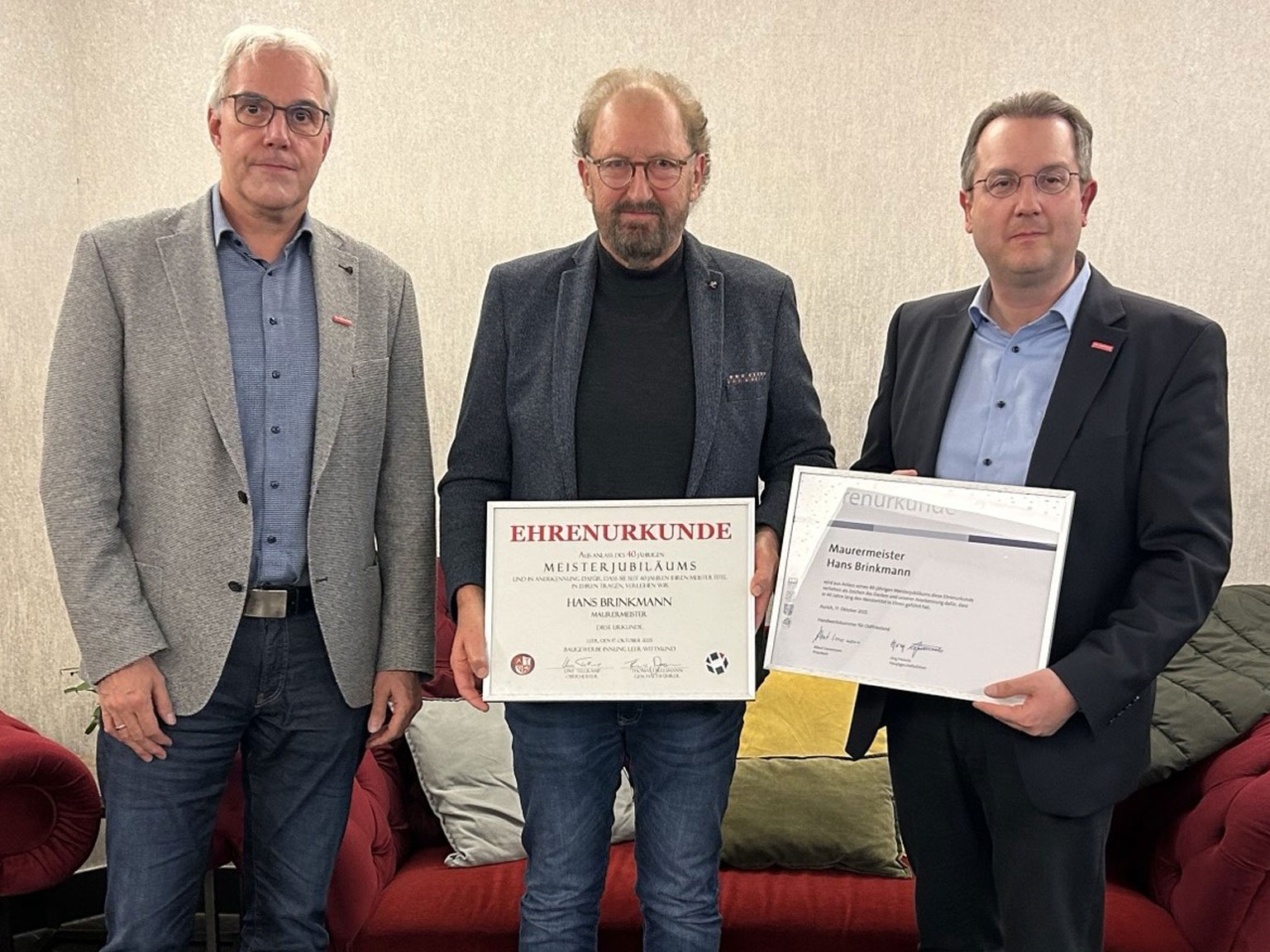 - Alfred Haase, Maurermeister, Westoverledingen: 50-jähriges Meisterjubiläum (Meisterprüfung am 14.10.1975)