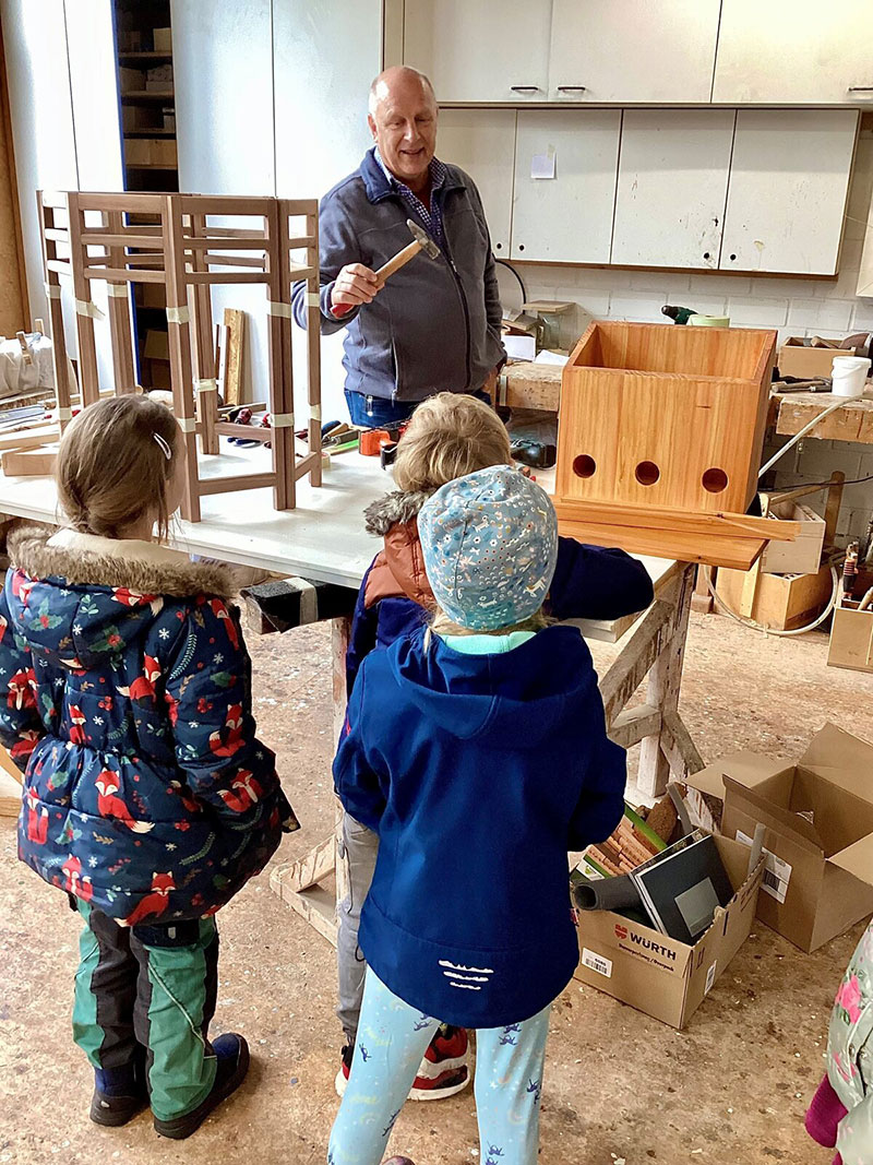 Die Kinder der Kita Hollen sowie der Kita Hollen Oll School tauschten für einen Tag den Gruppenraum gegen die Hobelbank. Unter der fachkundigen Anleitung von Inhaber Wilhelm Eden erkundeten die kleinen Besucher die Werkstatt. Dabei lernten sie nicht nur den Geruch von frisch bearbeitetem Holz kennen, sondern erfuhren auch, wie aus einem rohen Naturmaterial durch Geschick und moderne Technik nützliche Werkstücke entstehen.